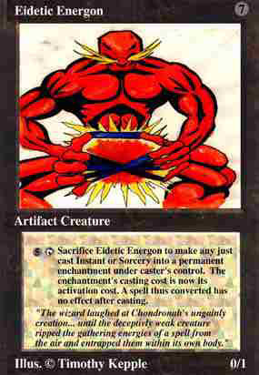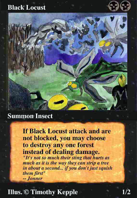 Magic: The Gathering card designs. I submit at least 40 designs. I did not win. However, I still think that some of my designs are kind of neat.